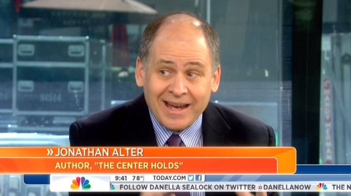 Appearing on Friday's NBC Today to push his new 448-page love letter to President Obama about the 2012 election – laughably titled, The Center Holds – left-wing Bloomberg columnist Jonathan Alter gushed: "I think this is, you know, partly just to place this in the history of this country. It was an extraordinarily important election....And I think there's also a personal lesson from Barack Obama, and that's of perseverance..." [Listen to the audio or watch the video after the jump]