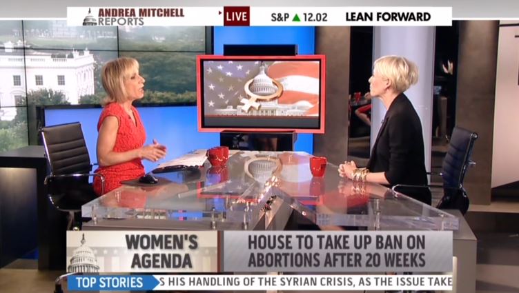 On her eponymous 1 p.m. ET show on MSNBC on Thursday, host Andrea Mitchell ranted against House Republicans daring to introduce pro-life legislation to limit abortions: "The House is expected to vote by tonight on controversial new restrictions that would go against Roe v. Wade. And if they were to pass the Senate, the President would of course veto it...So what's the point?" [Listen to the audio or watch the video after the jump]