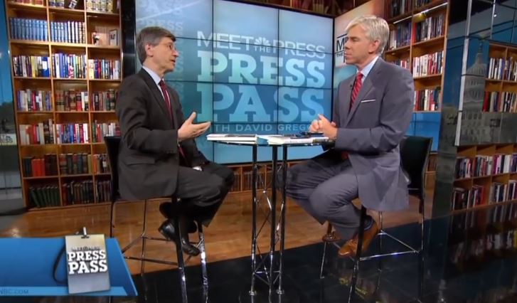 In an interview with liberal economist Jeffrey Sachs for Meet the Press's Press Pass segment on Sunday, moderator David Gregory worried about skepticism of big government: "...a lot of it has to do with what role does a government play in creating more structural balance in the economy, creating more jobs...doing what nobody else can do for the economy....but that the country writ large does not support....So what changes that and what happens in the absence of that movement back toward government playing a bigger role and spending all of that money?" [Listen to the audio or watch the video after the jump]