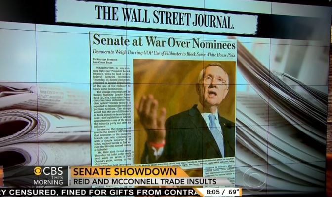On Friday's CBS This Morning, fill-in co-host Anthony Mason declared: "A showdown in the Senate over the approval of President Obama's nominees has turned into a war of words. Majority Leader Harry Reid and Minority Leader Mitch McConnell traded unusually personal charges yesterday."