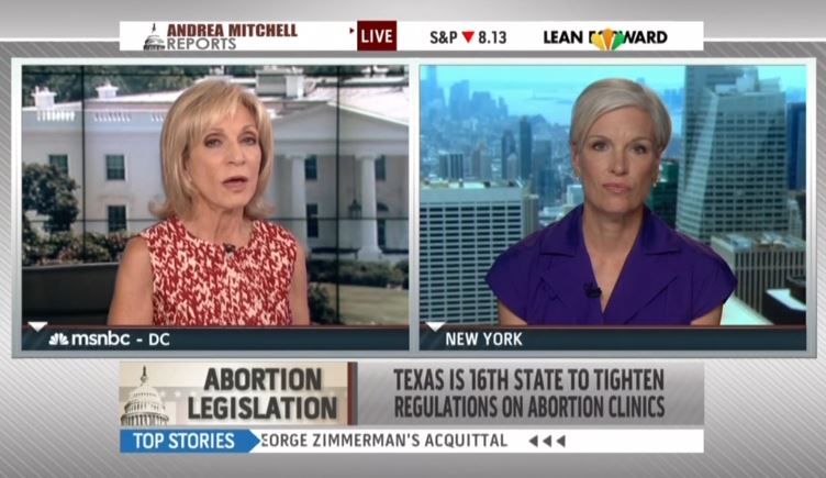 Turning to Richards, Mitchell implored: "What can you or Planned Parenthood and other groups do to try to keep some of these clinics open?" Richards used the opportunity to proclaim: "Look, this is a very extreme set of bills that are going to close down dozens of health centers in Texas.... I think it's a growing theme, unfortunately, in many states where politicians are putting their own political agenda ahead of women's health care."