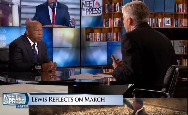 Gregory further teed up Lewis to bash conservatives: "And you even said during your speech yesterday [at the MLK speech anniversary], 'There are forces, there are people who want to take us back.' What specifically are you talking about?" Lewis ranted: "Well, I hear people over and over again saying, 'We want to take our country back.' Take it back where? Where are we going?...when I was growing up, I saw those signs that said, "White Men," "Colored Men"...Those signs are gone."