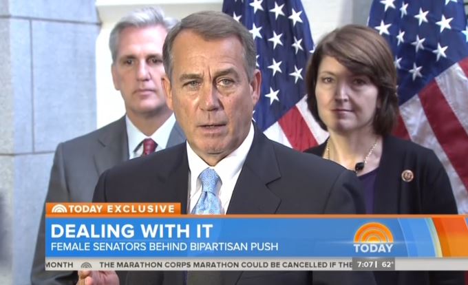 Co-host Savannah Guthrie used the same talking points in an interview with Republican senators Susan Collins, Lisa Murkowski, and Kelly Ayotte minutes later: "Some of your Republican colleagues over there [in the House] said you guys are the 'Senate surrender caucus.' Are you angry, embarrassed, frustrated?...Do they still need a reality check today? Do you agree with what Senator McCain said, which was essentially, 'This fight is lost, it's time to move on'?"