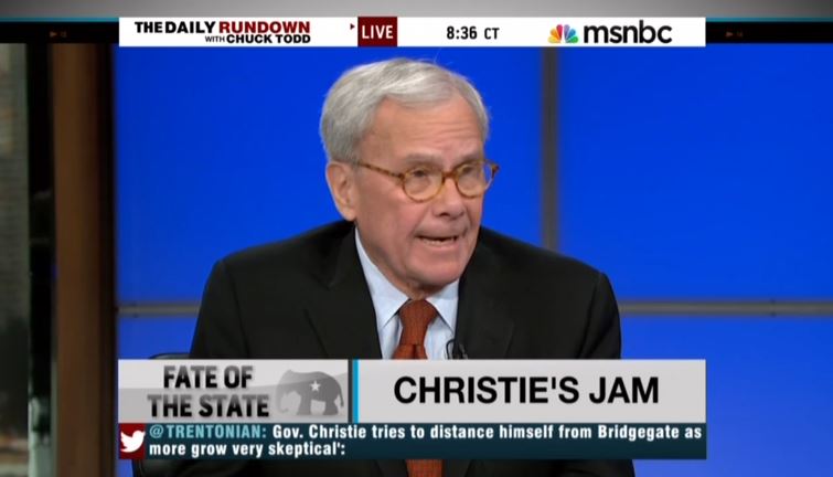 Appearing on Wednesday's MSNBC Daily Rundown, NBC special correspondent Tom Brokaw warned his media colleagues about their excessive coverage of the Chris Christie bridge controversy: "I do think, across the country, however, when they're looking at long-term unemployment, and they're looking at the uncertainty of the ObamaCare, they're saying, 'You've got to move on, guys.'" [Listen to the audio or watch the video after the jump]