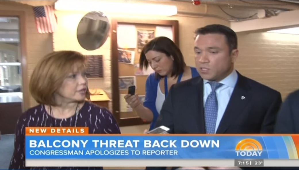 The additional "fallout" that Hall mentioned was simply the Congressman offering an apology to New York One reporter Michael Scotto. In the report that followed, Capitol Hill correspondent Kelly O'Donnell declared: "Democratic critics say the Congressman is a hot head who should play a political price for his behavior. The Congressman tells me this was emotion that got the better of him after a very long day. Whatever the anger management issues were, he's trying to defend himself now."