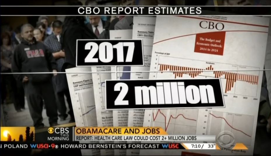 While both CBS This Morning and ABC's Good Morning America both managed some air time on Wednesday to cover a new Congressional Budget Office report showing ObamaCare will cost the American economy about 2.5 million jobs, NBC's Today couldn't be bothered to mention the troubling news.