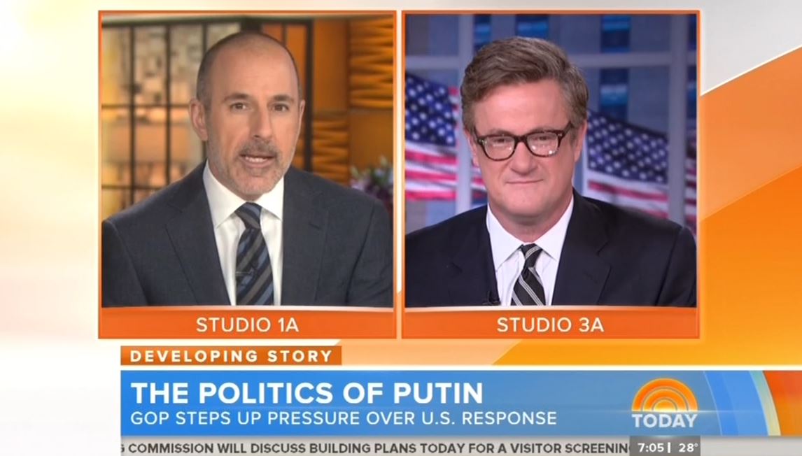 Talking to MSNBC Morning Joe host Joe Scarborough on Thursday's NBC Today about the Ukranian crisis, co-host Matt Lauer saw the Republican Party, not Russia, as President Obama's fiercest adversary: "We're six days into this crisis now, the rhetoric seems to be heating up. Not between Russia and the United States, but between Republicans in Congress and the administration." [Listen to the audio or watch the video after the jump]
