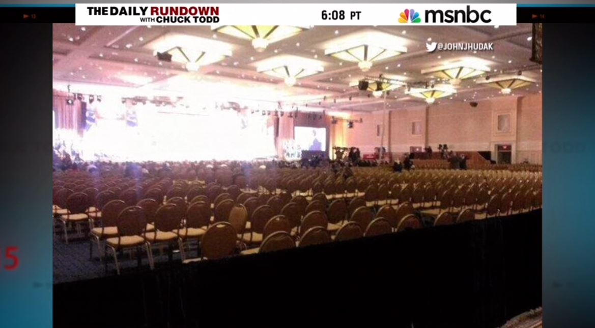 CHUCK TODD: One more thing, for a party struggling to change its demographic destiny, this picture taken by a Brookings Institution fellow of an almost empty ballroom at a panel on Republican outreach into minority communities, should be a bit of a warning. You don't want to play into your party's stereotypes there. And though CPAC's panel on immigration was well-informed, respectful, and representative of diverse views, it was also attended by just about 50 people.