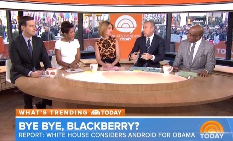 Lauer continued: "In what would be a symbolic blow to struggling BlackBerry, the Wall Street Journal saying the White House is now testing phones from Samsung and LG."