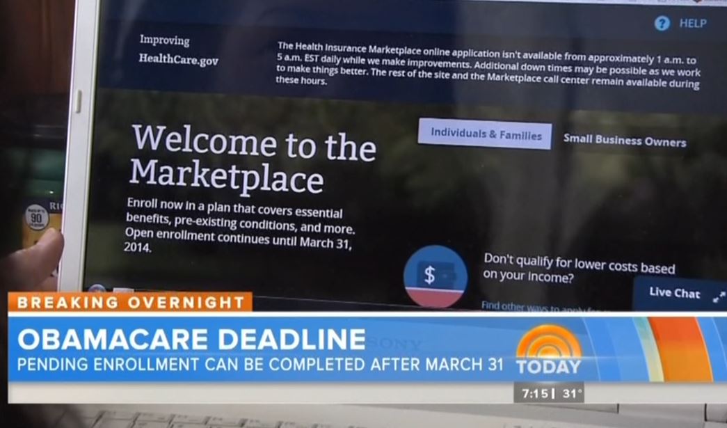 [ON-SCREEN HEADLINE: ObamaCare Deadline; Pending Enrollment Can Be Completed After March 31]