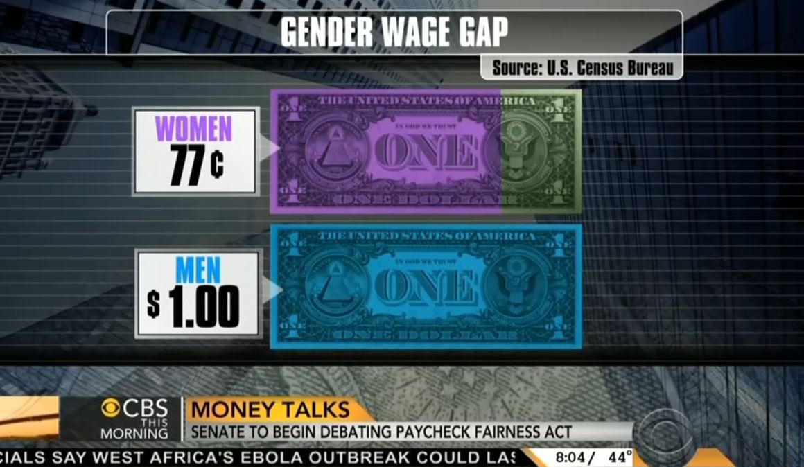 On Wednesday, with footage rolling of President Obama signing executive orders designed to promote the liberal agenda item, co-host Gayle King introduced Catalyst CEO Deborah Gillis, who was "in the room yesterday when the signing took place." Gillis lamented: "I first looked at this issue as a high school senior, and at that time, the gender pay gap was 67 cents on the dollar. Today it's 77 cents. 31 years later, we've not made a lot of progress..." Neither King nor her fellow co-hosts cited Garrett's reporting from the day before to refute those numbers.