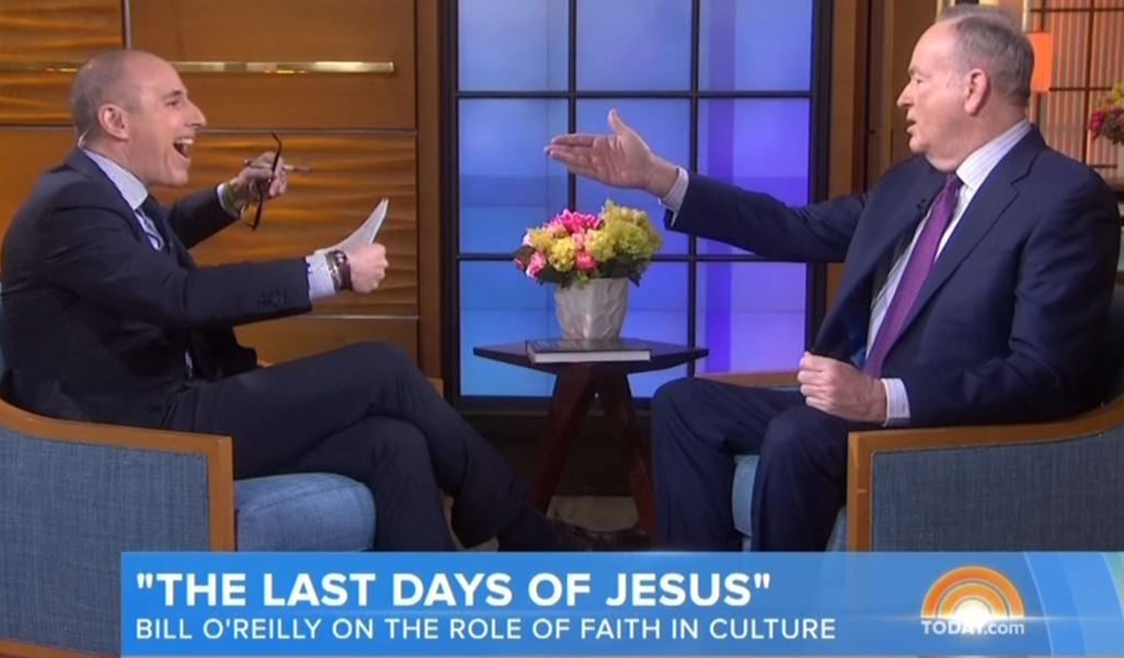 The exchange began with Lauer promoting O'Reilly's latest book, The Last Days of Jesus, and observing: "Your timing's really good on this....There seems to be a lot of attention being paid to religion now. A hunger for it. What's driving it?" O'Reilly responded: "Well, I think people are fed up with secularism because it's really – it gets just to be too much."