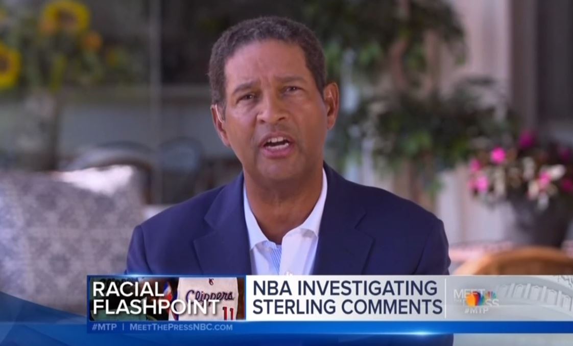 Appearing on NBC's Meet the Press on Sunday, HBO Real Sports host and former Today show co-host Bryant Gumbel argued that alleged racist comments by NBA Clippers owner Donald Sterling were an indication of broader racism in America: "We historically, whether it's Donald Sterling or Cliven Bundy or Trayvon Martin, we look at a tip of the iceberg and we ignore the mass underneath it. And really, that's what – that's where the problem lies." [Listen to the audio or watch the video after the jump]