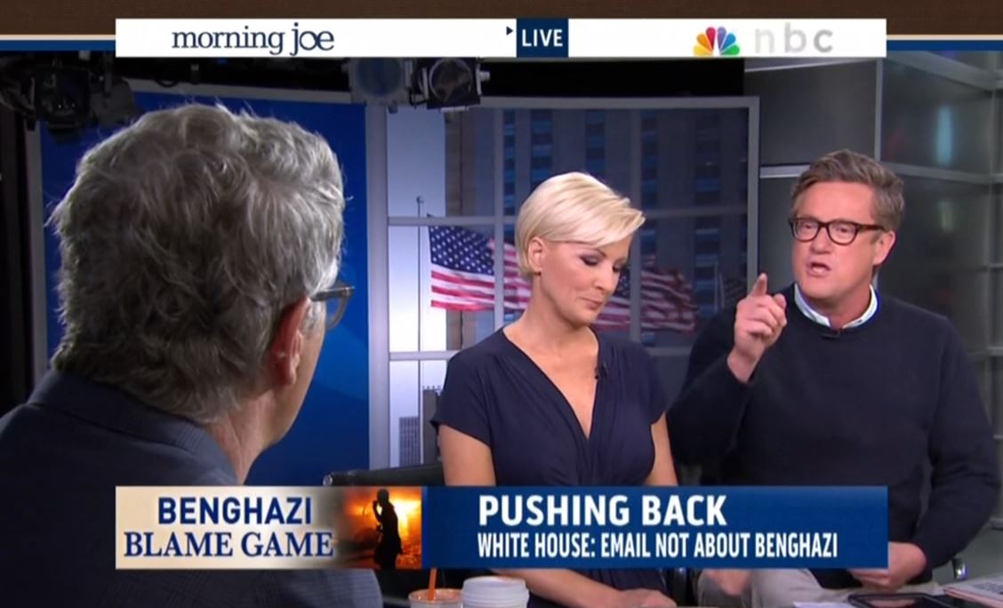 SCARBOROUGH: And Chuck Todd knows it's about Benghazi. And he [pointing to Mike Barnicle] knows it's about – everybody watching knows it's about Benghazi. And you're talking about how the Republicans – you see the White House spokesperson lying on national television. You see an ABC News person shocked that he's lying and treating the press corps and Americans like their stupid, he's says it's not about Benghazi.