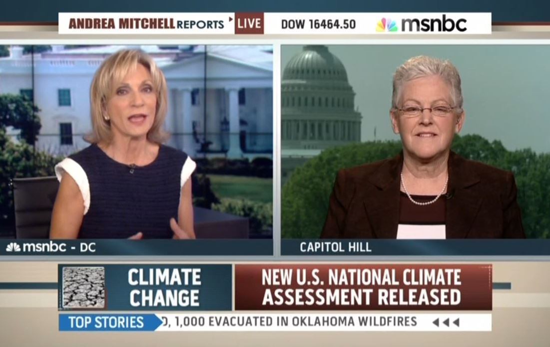 Introducing McCarthy, Mitchell proclaimed: "The White House is now highlighting the dangers of climate change in a major new report today that says the average temperature in the United States has gone up at least 1.3 degrees....The report says that climate change is real and it is already happening."
