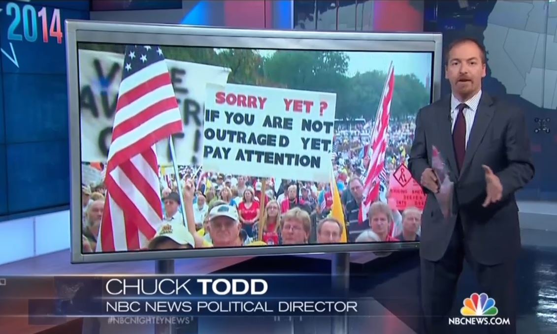 In a report for Tuesday's NBC Nightly News, political director Chuck Todd offered an obituary for the Tea Party based on a handful of expected primary losses and sympathized with Democrats hoping for weak Republican candidates in November: "Democrats are watching this Tea Party fade with disappointment....They were counting on a few bad Tea Party nominees to bail them out of a race or two, and as you can see, that might not happen this year." [Listen to the audio or watch the video after the jump]