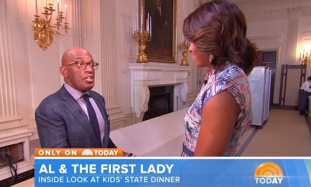 Roker had the friendly chat with the First Lady while attending the Kids State Dinner at the White House on Friday, something he promoted during the segment: "The tiniest top chefs from all fifty states with a seat at the White House table, serving recipes they submitted....if you give a kid a meal, they'll eat for one meal. It's the old saying. You teach somebody how to fish or how to make the healthy meal, they eat that way for a lifetime."