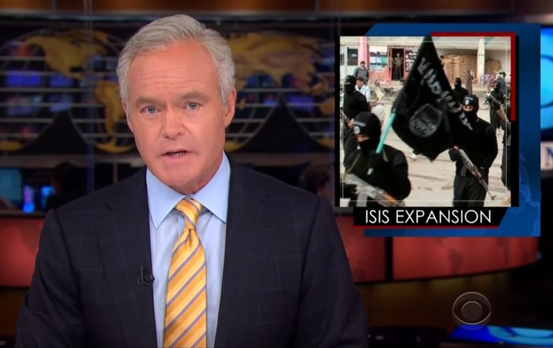 Edited footage of men being executed ran on screen, in addition to clips of ISIS blowing up Shiite mosques. Pelley wrapped up the brief segment by noting: "The slaughter is spreading. The Iraqi government is battling ISIS with limited success." No mention was made of the Obama administration's handling of the growing crisis.