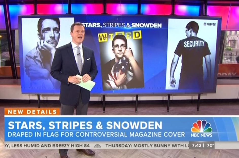 As for that cover photograph, a lot of people are going to be talking about it today, guys. The famed photographer Platon took these photographs that you'll see inside Wired magazine. He brought some props with him, showed him [Snowden] the American flag, and says Ed Snowden said, "Yes, give me the flag."