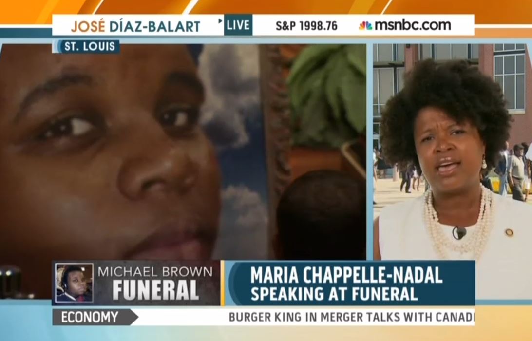 In a testament to how slanted MSNBC's coverage of the unrest in Ferguson, Missouri has been, Democratic state senator and left-wing bomb-thrower Maria Chappelle-Nadal praised the channel's activist coverage of the story during an appearance on Monday's Jose Diaz-Balart: "I have to tell you that because your network has been here, a lot of truths have come to light. If the national media was not here, everything would be brushed under the rug....we would not be able to hear the stories of police officers who have called us and treated us like animals." [Listen to the audio or watch the video after the jump]