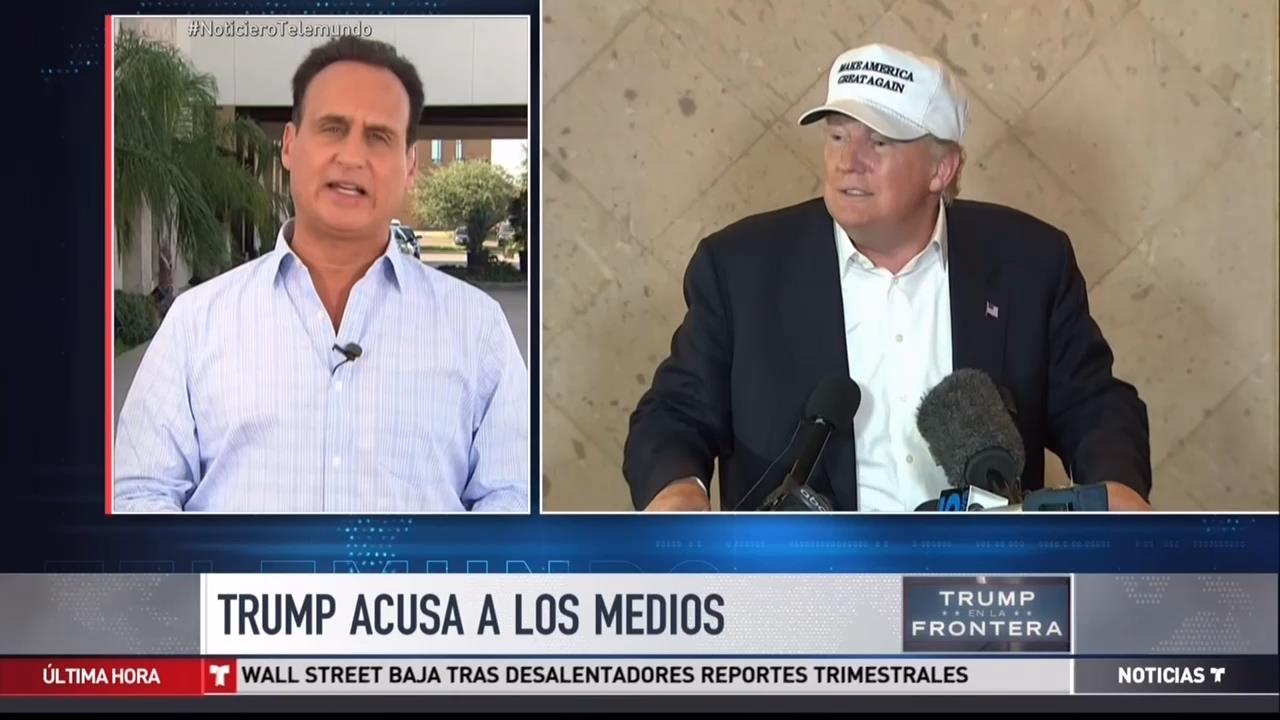 JOSE DIAZ BALART, ANCHOR: The mogul and Republican candidate Donald Trump was here, in this area of the border with Texas. In an event that took place here, I told him that every month, 53,000 U.S.-born Latinos become 18 years old, the age to vote, and that our community, the Latino community, has grown to 54 million and I tried to ask him what this community would feel when it hears him saying that those that cross the border are rapists and murderers, but Mr. Trump didn’t allow me to finish my question and this is what he said: