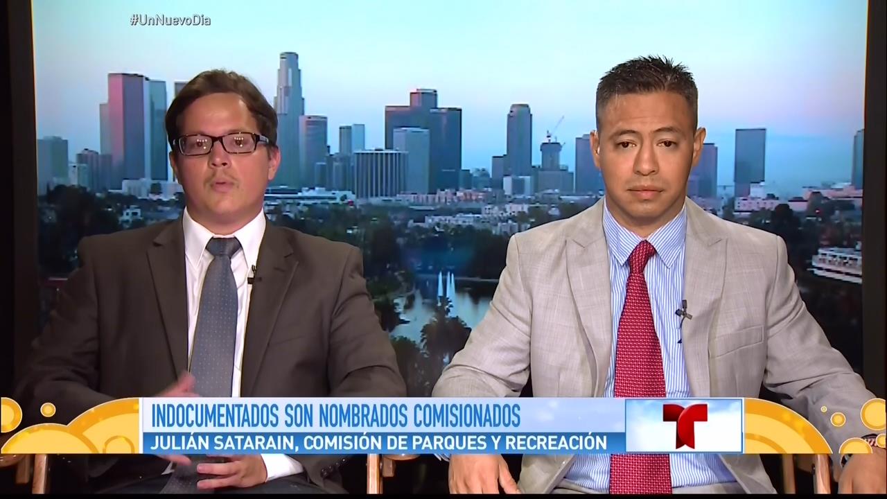 NEIDA SANDOVAL, PRESENTADORA: En un hecho sin precedente, California se convirtió en la primera ciudad de Estados Unidos en aceptar que dos indocumentados integren parte del gobierno local. Se trata de Julián Zatarain, quien será el responsable de la comisión de parques y recreación y Francisco Medina, de la comisión de salud y educación de la ciudad de Huntington Park.
