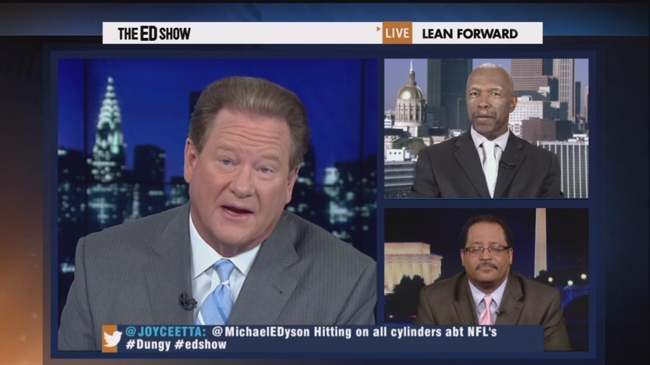 On the July 23 edition of The Ed Show, host Ed Schultz and guest Michael Eric Dyson took turns attacking former NFL coach Tony Dungy for stating that he “wouldn’t want to deal” with the media attention that followed the drafting of Michael Sam, the NFL’s first openly-gay draftee.