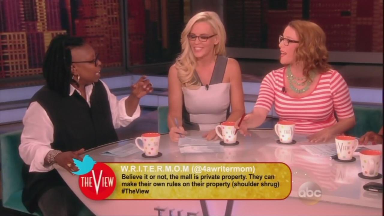 WHOOPI GOLDBERG: A woman at the Georgia mall with a fitness group. And they formed a prayer circle like they had done in the past, until a mall cop broke them up saying “prayer is against the mall policy” and the manager back him up adding that even saying grace at the food court isn’t allowed.