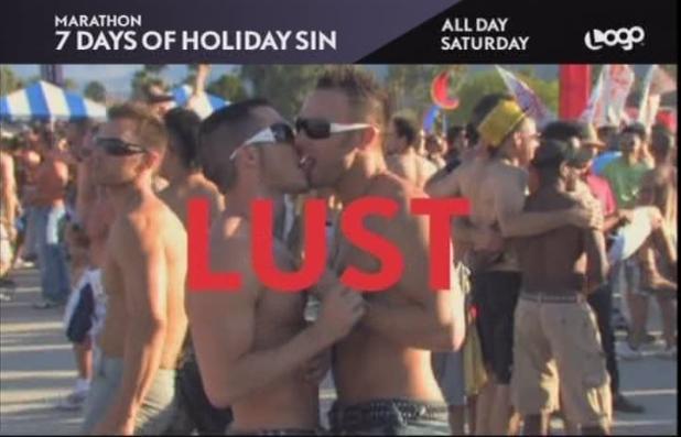 The channel encourages viewers to “Indulge in a new sin every day!” and ends with a list of the seven deadly sins and accompanying images. Predictably, a gay couple making out flashes across the screen to represent “lust.”