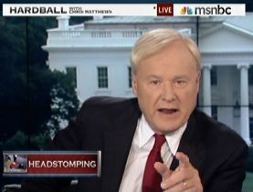 On this evening's Hardball, after rolling tape of the incident that occurred outside the Kentucky senatorial debate last night, Matthews dredged up the creakiest cliché in politics.