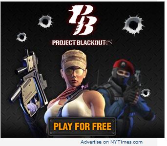 Note: I heard from one reader who suggested the ads are generated by some kind of advertising algorithm over which the Times has little control. Assuming, arguendo, that is so, no one, um, held a gun to the Times' head to enter into such an arrangement. For that matter, the Times must have some control over what appears on its site. Surely you won't see ads for hard-core porn, for example. If the Times were intent on preventing violent video game ads from turning up on its op-ed page, it could have found a way. And when the Times puts "Advertise on NYTimes.com" directly under the ad, I say it assumes responsibility.