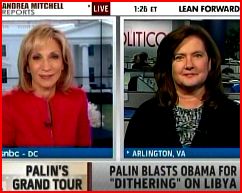 Could Andrea Mitchell possibly be more snide and condescending toward Sarah Palin? On her MSNBC show today, here's how Mitchell introduced her interview with Jeanne Cummings of Politico concerning Palin's current trip to India and Israel: