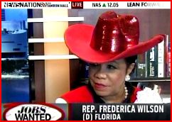 In an entertaining interview with Tamron Hall on MSNBC this afternoon, Dem congresswoman Frederica Wilson of Florida cited "racism" first among causes of high black unemployment. She also: called for a second stimulus; said now is not the time to criticize President Obama; took a sideways swipe at Maxine Waters; and asserted President Obama would be defeated for re-election if he tried to help the black community. Video after the jump.