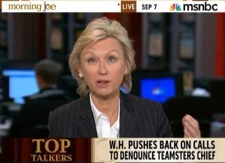 Newsweek editor Tina Brown brayed that we must not "sanitize" political speech or take the "juice" out of it--all the while condemning Michele Bachmann and Glenn Beck for some of their remarks. And the preposterous Mike Barnicle somehow defended Hoffa on the basis of the "context" of his remarks. Say what? Hoffa was introducing the President of the United States! And don't miss Barnicle logic-defyingly defending the double-standard when it comes to Sarah Palin on the basis that everyone knows the MSM will attack her. Video after the jump.
