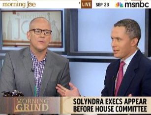 A blasé Joe Scarborough grudgingly introduced "this Solyndra thing," citing those pesky "conservatives on Twitter" who keep raising it. The show deigned to devote under two minutes to the story, with nary a mention of the facts that the main driver behind Solyndra was a major Obama fundraiser, that the Bush admin blew off funding for Solyndra after concluding their products weren't competitive and that Solyndra execs are now taking the Fifth. View the video after the jump.