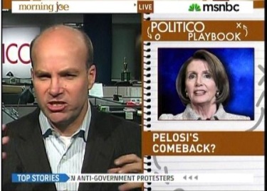 Sober political analysis, or merely an MSMer pining for the good old days of Speaker Pelosi? On Morning Joe today, touting a Politico Pelosi puff piece about her "golden touch," Mike Allen claimed it was "very possible" that Democrats would retake the House majority in 2012. Video after the jump.