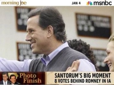 On today's Morning Joe, Mark Halperin and John Heilemann, co-authors of the best-selling Game Change about the 2008 election, both opined that Santorum, given his appealing blue-collar background—and if he can avoid getting prickly with the press—could indeed find the media rooting for him. Video after the jump.
