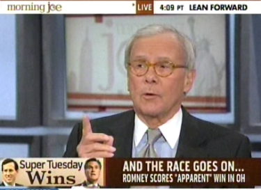 Tom Brokaw is the man that our Brent Bozell recently described as having "used NBC and [his] anchor chair as a platform to promote Democratic agendas and delight in Republican setbacks for more than 20 years." But every once in awhile, perhaps out of Greatest Generation nostalgia, Brokaw has something kind to say about a Republican.