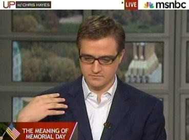 CHRIS HAYES: Thinking today and observing Memorial Day, that'll be happening tomorrow. Just talked with Lt. Col. Steve Burke, who was a casualty officer with the Marines and had to tell people [inaudible]. Um, I, I, ah, [Steve] Beck, sorry, um, I think it's interesting because I think it is very difficult to talk about the war dead and the fallen without invoking valor, without invoking the words "heroes." Um, and, ah, ah, why do I feel so comfortable [sic] about the word "hero"? I feel comfortable, ah, uncomfortable, about the word because it seems to me that it is so rhetorically proximate to justifications for more war. Um, and, I don't want to obviously desecrate or disrespect memory of anyone that's fallen, and obviously there are individual circumstances in which there is genuine, tremendous heroism: hail of gunfire, rescuing fellow soldiers and things like that. But it seems to me that we marshal this word in a way that is problematic. But maybe I'm wrong about that.