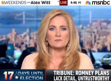 1. Criticizing the Tea Party's lack of "diverse thinking," she asked Joe Scarborough "how much has the Tea Party damaged the Republican party?" Joe gently explained that far from damaging the GOP, the Tea Party propelled it to historic landslide victories in 2010. 2. Witt later cast the Salt Lake Tribune's recent endorsement of Barack Obama as a "surprise," ignoring the fact that in 2008, the Salt Lake Tribune endorsed . . . Barack Obama. View the video after the jump.