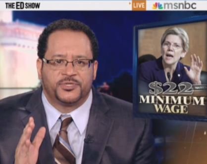Discussing Elizabeth Warren's latest Senate hearing stunt, on the minimum wage, Dyson gushed "wouldn't that be great" if the minimum wage were raised to $22 per hour?  Yeah, great . . . if you'd like unemployment to soar into the stratosphere, as lower-skilled workers were priced out of the market.  African-Americans would be particularly hard hit.  View the video after the jump.