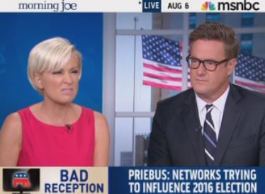 After Mika admitted on today's Morning Joe that she doesn't disagree with RNC Chairman Reince Priebus's warning that the RNC might not cooperate with NBC or CNN on Republican debates should the networks proceed with their biopic plans, Joe took things a big step further, saying: "You said off the air, Mika, it was as if they were trying to climb up something of the entire Clinton organization." "Something"? You fill in the blanks. View the video after the jump.