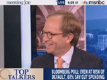On today's Morning Joe, former Obama car czar Steve Rattner passed along the Obama admin line that negotiating with Republicans over raising the debt ceiling "is like negotiating with terrorists." With catlike quickness, Joe Scarborough pounced: "so you're saying Barack Obama was a terrorist in 2006 when he said he refused to raise the debt ceiling?" The cornered Rattner had no comeback, actually asking Mika Brzezinski of all people to "help me out here," then resorting to the lame "it's complicated" line. View the amusing video after the jump.