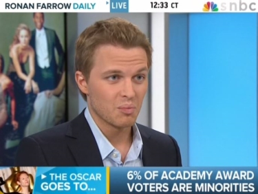 RONAN FARROW: We're kind of seeing a sea change because we have the Vanity Fair cover this year which is predominantly black, representing the power players in Hollywood, we have for the first time a black director potentially winning Best Picture. Ah, although, do you think it matter that he's British [laughs nervously]?