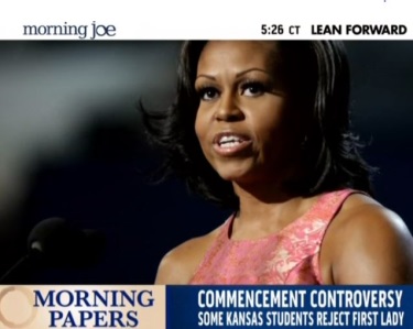 JOE SCARBOROUGH: In the Washington Post, high school students and their families are protesting Michelle Obama's involvement in some Kansas graduation ceremonies. There are now concerns for the First Lady's participation stealing the spotlight from the kids and limiting the amount of seats available for family members. The speech is tied to the 60st anniversary of the Supreme Court's decision on Brown v. Board of Education, which ended school segregation --