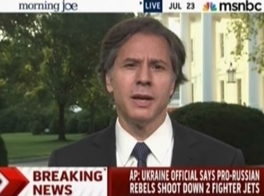Yes, so "extraordinary" that even as Blinken was being introduced, news was breaking that the Putin-backed Ukrainian rebels had resumed their terrorist ways, shooting down two Ukrainian military planes. View the video after the jump.