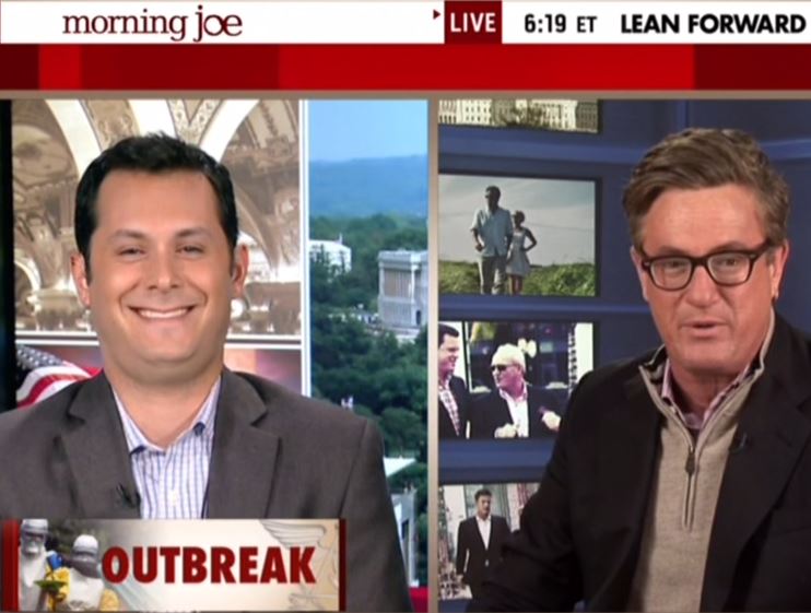 On today's Morning Joe, HuffPo's Sam Stein twice acknowledged that the ban might "help America." Yet he argued against the ban on the grounds that it would hurt West Africa and make it harder to track people fleeing those countries. You sensed Sam's heart wasn't entirely in it, and when he finished Joe Scarborough thanked him, saying he was going to hit Stein's weak offering out of the park, as that SF Giants batter did last night in the ninth.