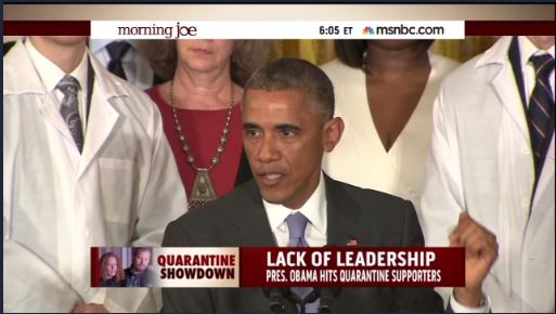 MIKA BRZEZINSKI: And without naming names, President Obama criticized lawmakers who are supporting quarantines and travel bans for people returning from Ebola-affected countries.