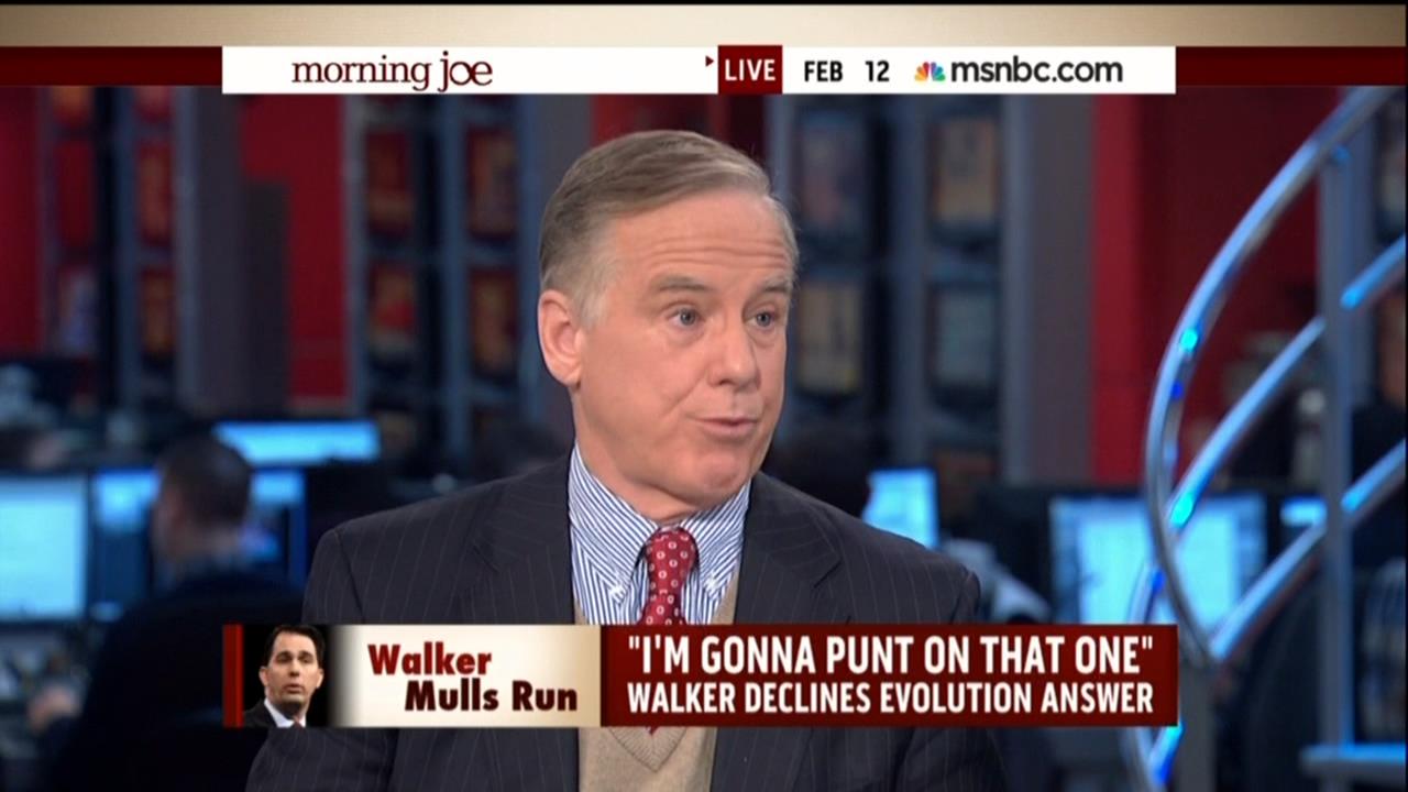 HOWARD DEAN: This [his declining to answer question on evolution] is a particular problem for Scott Walker which has not been an issue yet but it will. Scott Walker, were he to become president, would be the first president in many generations that did not have a college degree. He's never finished. The issue here is not just an issue of dancing around the question of evolution for political reasons, the issue is how well educated is this guy? And that's a problem.