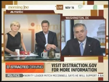 MIKE BARNICLE: It's not just cell phones, Joe. ...I'm telling you, the touch-screen radio, changing the radio signals on the cars is a huge distraction. Mr Secretary, what about enforcing – what about raising the age to get a license to 18 across the country?